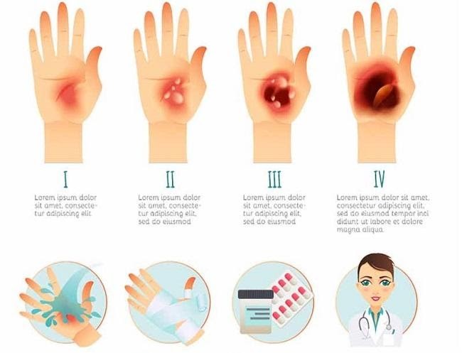 Các mức độ tổn thương của vết bỏng và cách giải quyết phù hợp.